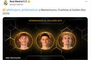 此前金球未发文,皇马祝贺赫伊森、居莱尔和马斯坦托诺进金童候选